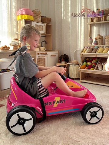 Available in vibrant Blue and playful Pink, the Mini Go-Kart Racer lets every young driver hit the track in style—whether they’re chasing speed, fun, or just big smiles
