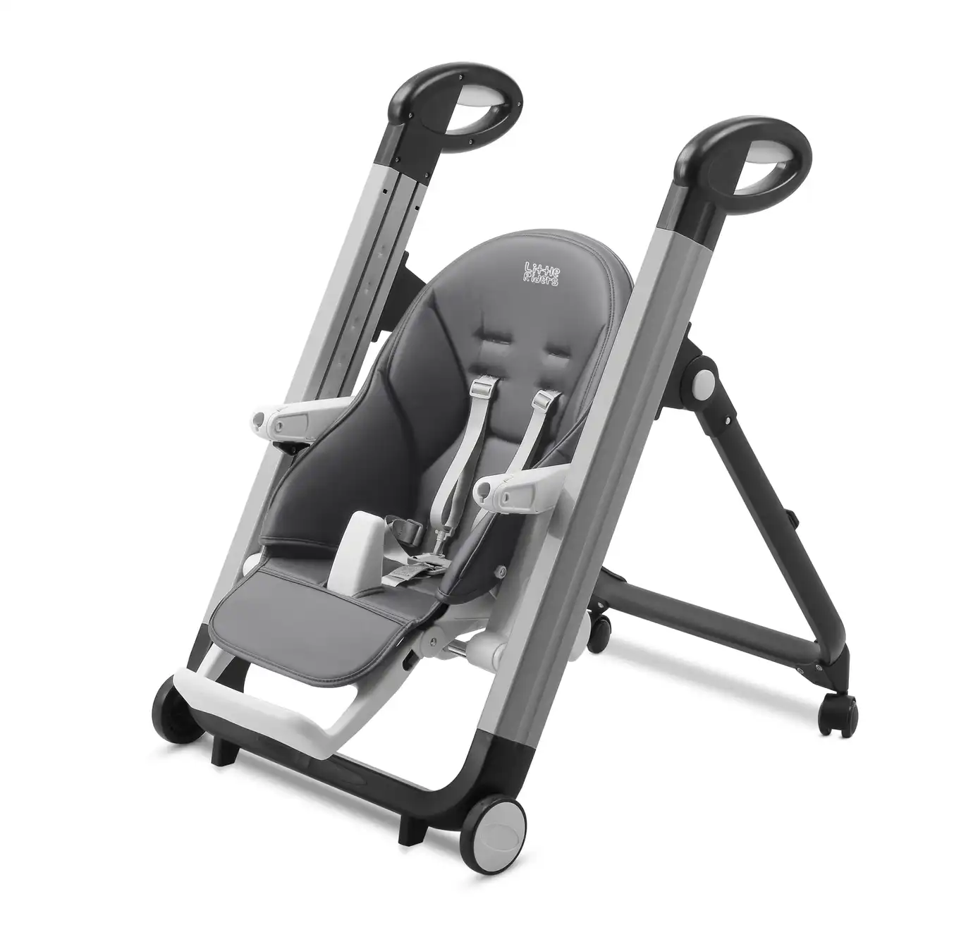 The Little Riders's Comfort baby high chair is one of the most practical and comfortable highchairs. With features such as adjustable seat height, adjustable footrest and recline-able back rest, this high chair offers the ultimate solution when it comes to feeding your little one. You can use it as a recliner chair or as a high chair when the baby is ready for solid food. The food tray is also adjustable and can be removed making it easy for your child to move right up to the table with the rest of the family! Handles on each side provide a natural and comfortable grip which allows you to release brake with simple pull of the buttion and move around the chair to where ever you want. Brekes are automatically applied with release of the handles making it on of the most safe high chairs in the market,