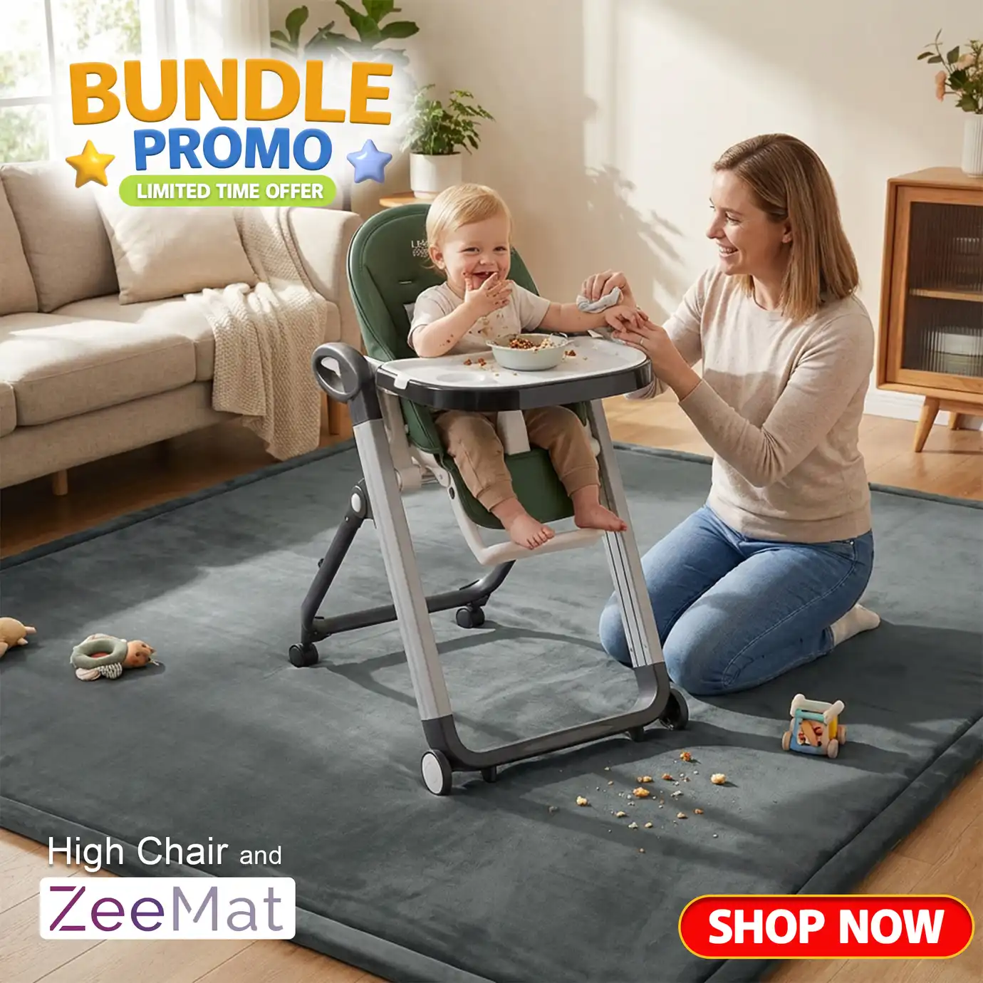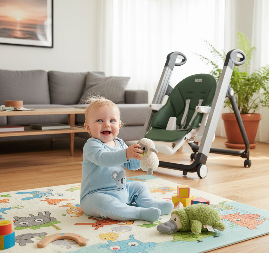 Little Riders Australia Comfort Baby High Chair - Green + ZeeMats Dark Grey (Large) Bundle