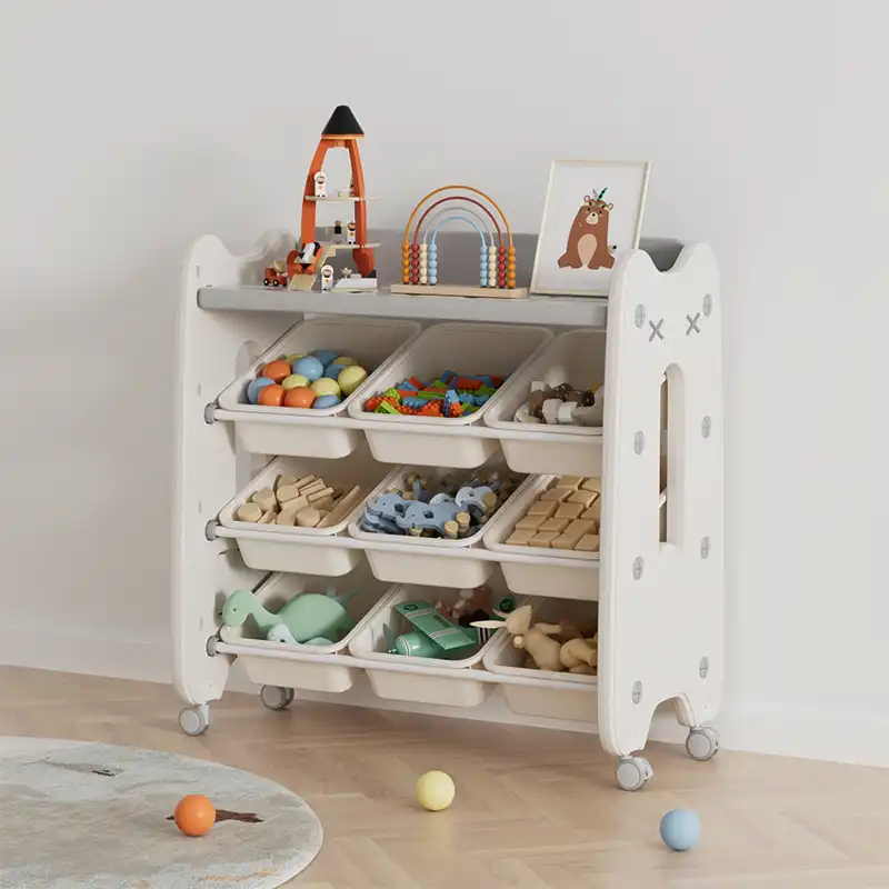 Toy Organiser Storage Rack with wheels, 9 bins and a shelf
